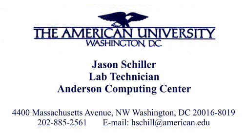 While a student at The American University, I had a part-time position working as a lab assistant and later a Lab Technician at the Anderson Computing Center. Here I did everything from assisting users with applications to troubleshooting 10base-2 network problems to installing the new computers on the campus network. |