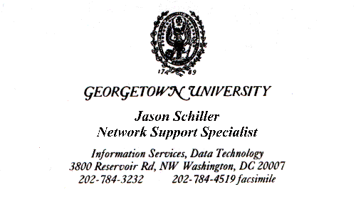 Georgetown University was the second university LAN that I worked on. I worked on both the main campus and the Georgetown University Medical Center. In many ways Georgetown was a lot like AU in that it was a multi-building LAN running TCP/IP as well as IPX/SPX. |
