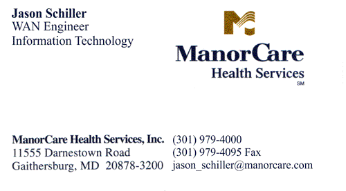 In 1998 I made a fairly large change moving from Academic jobs into the corporate world by taking a job at ManorCare (now HRC-ManorCare). It also was a move from the LAN environment to the WAN environment. I was responsible for the WAN links connecting the corporate head quarters to 220 remote facilites. I learned quite a bit about frame relay encapsulation and frame relay services. I also had an intorduction into troubleshooting with telcos, as well as managing the installation of fractional and full T1s to new facilities. |